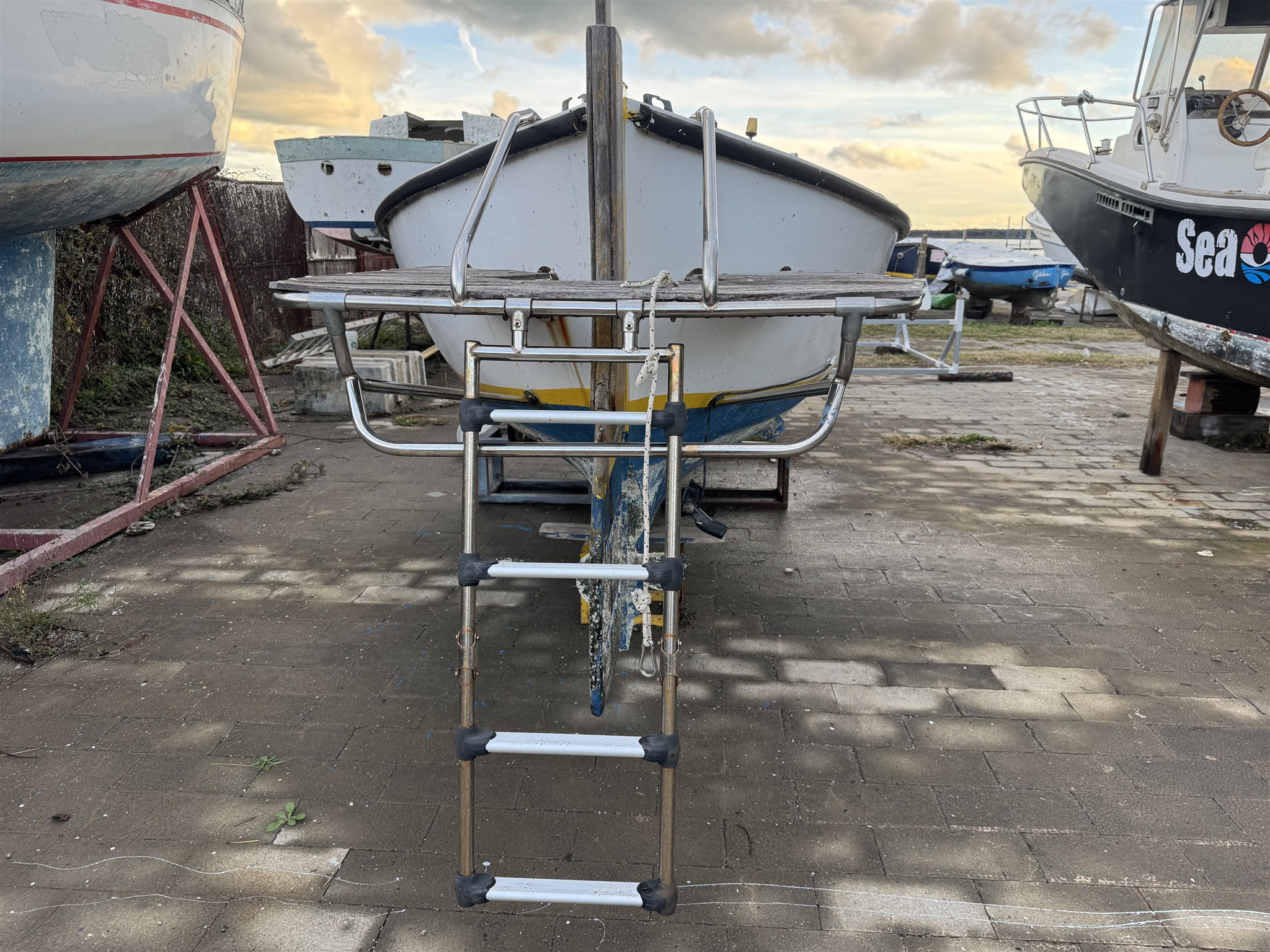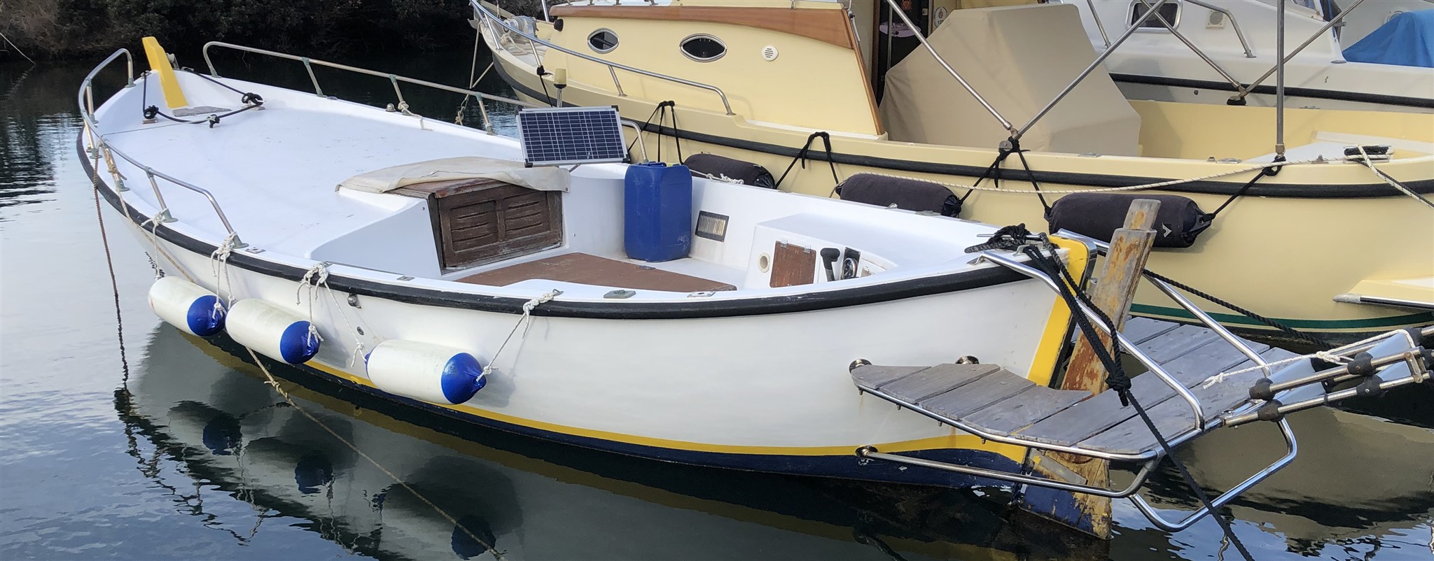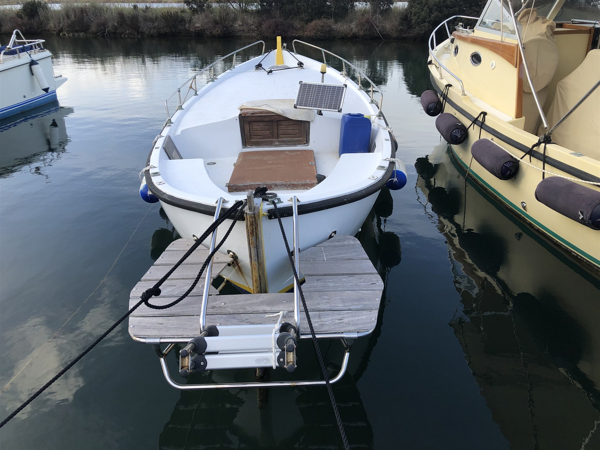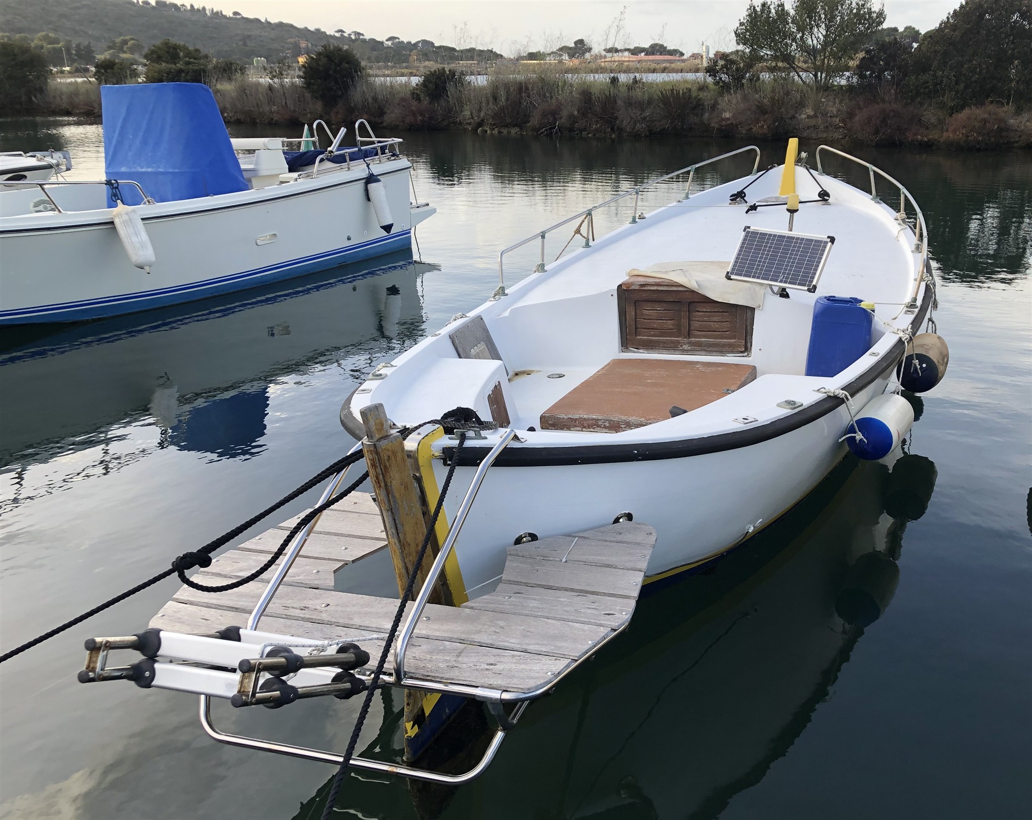 Moteur Lombardini à 0 heure. Coussins 2022. Plate-forme de bain en acier inoxydable avec échelle de 2020. 2 auvents. Panneau solaire. Cabine confortable